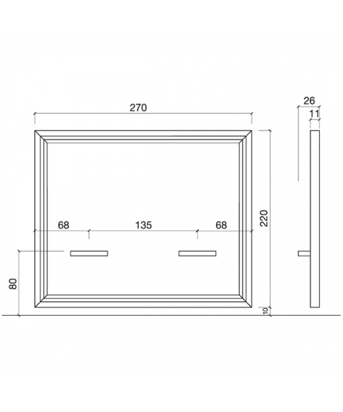 Зеркало парикмахерское "Otello Infinite (270)" - на два рабочих места с декоративной рамкой. Зеркало оснащено столешницами из нержавеющей стали. Крепление к стене.