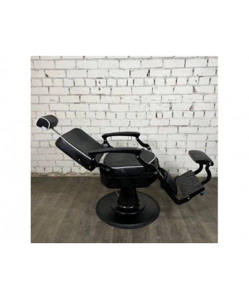 Дизайн выполнен в строгом черном цвете с белым кантом, благодаря чему оно идеально впишется в любой интерьер мужского салона. Удобные и легкие регулировки кресла позволят мастеру установить оптимальное положение для работы с клиентом.