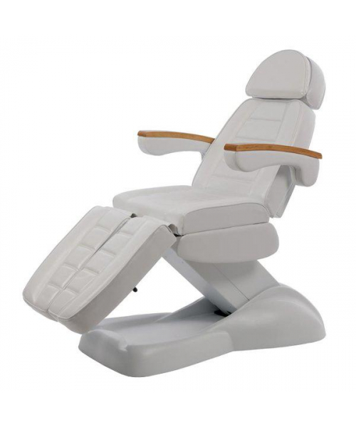 Устойчивое основание.Большая грузоподъемность. Регулировка спинки, высоты, угла наклона кресла и подушек под ноги осуществляется пятью электромоторами с пульта управления. В комплекте ручной и ножной пульты дистанционного управления. Обивка - экокожа.